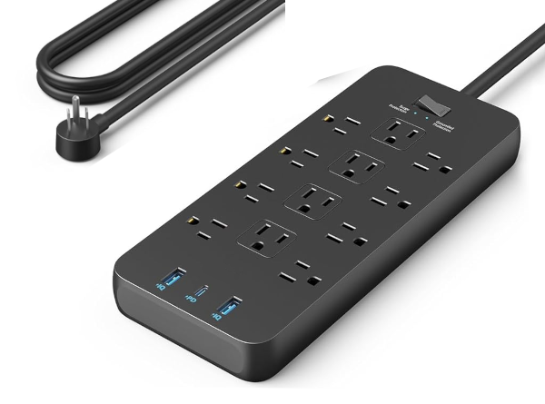 Experience fast, efficient charging with the 20W USB-C port, perfect for quickly powering your GNU/Linux, LineageOS, GrapheneOS, Replicant phone or other USB-C devices, while the two USB-A ports handle your earbuds and other accessories. This 12 outlet surge protector is engineered with a superior 8-Point Safety System, including surge protection, grounded protection, and fire resistance, ensuring your valuable electronics are safeguarded against voltage spikes and overloads. Its built-in circuit breaker automatically cuts power during overloads, and the surge protection light turns blue when active, giving you peace of mind.