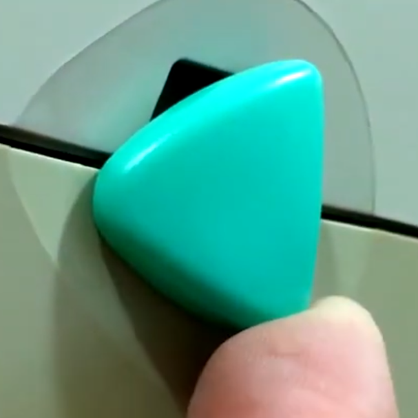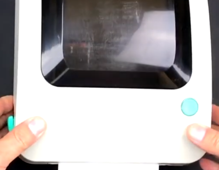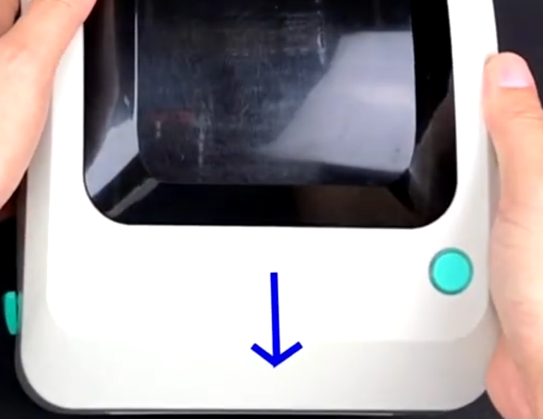 2. Open your label printer by taking both hands and positioning both hand behind the green triangles