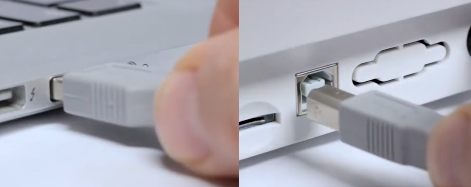 12. Connect the USB cable between your computer and printer, or between your router or ethernet switch and your printer if using an ethernet model