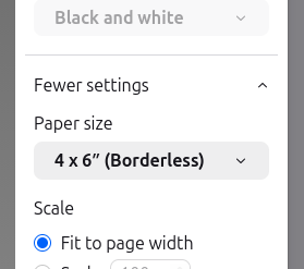 Note: If you have 4 x 5" Borderless selected or something that isn't correct the printer may not print anything and even shut off on you. It's critical to make sure the settings are correct for the label you are printing both in printer settings and when printing. If you have a label size that is not shown in printer settings continue reading.