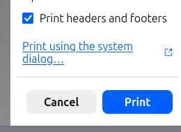 36. Once you've opened the sample label click the print icon and depending on the application, distribution, and release you may need to click a link if you scroll down that says print using the system dialog as shown here: